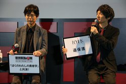 今回のステージでは、各作品の主役となる神谷浩史(斉木楠雄役)、島崎信長(レビウス役)の2人がゲストとして登壇。各作品についての魅力を語った。