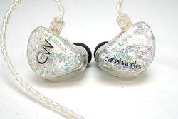 ユニバーサルモデルのCW-U73LVでは、カスタムモデルと同様の内部設計に加えてイヤーピース装着部にアルミ削り出しの2穴ノズルを採用。高精度のNC切削加工により、音の出口においてもカスタムモデルと同等の特性を実現したという。フェイスプレートはオパールのような輝きを表現した、ネオンホワイトとフレークホログラムを組みあせたデザインを採用している。