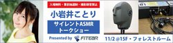 「春のヘッドフォン祭2019」で好評だった声優・小岩井ことりによる「サイレントASMRトークショー」。今回はダミーヘッドによるトークセッションのみの開催となるが、その中身はまだ秘密らしい。いずれにせよ、前回同様に “上級者向け” イベントとなることは間違いなさそうだ。なお本イベントは入場無料/抽選制となっており、抽選受付日時は10月30日23:59まで。申し込みは特設ページから。