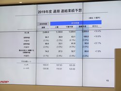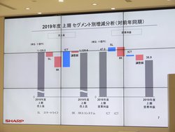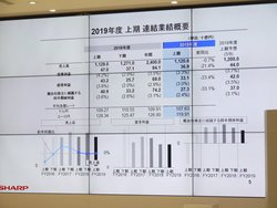 シャープは、2019年度第2四半期の決算概要を発表。売上高は前年比1.8%増の6,056億円、営業利益は0.6%増の223億円、当期純利益は31.6%減の148億円となった。