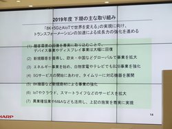 「これにより、トランスフォーメーションの加速による成長力の強化を進め、『8K+5GとAIoTで世界を変える』を実現していく」と意気込みを語る野村氏。2019年度通期の業績予想については、期初の予想を据置く。「期初の想定に比べ進捗が後ズレしている事業もあるが、業績は確実に回復している。説明した施策を確実に遂行することで、下期も業績の伸長を図ることができると考える」と自信を見せる。