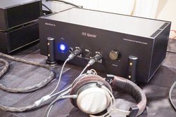 内部のシールド線を強化し、ACインレットにはフルテック製ロジウムメッキのもの、トランジスタなどは厳しく選別したものを使用するなど、特別モデルとしてこだわったという。4電源の効果を発揮するバランスとアンバランスの聴き比べが可能になっており、担当者によると「本当に同じアンプなのか、という感想を抱く来場者が多い」という。