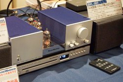 発売中の真空管アンプ「SWL-AA1」にあわせて設計したSLR方式バスレフ型スピーカー「SWL-SA1」に加えて、開発中のSWLシリーズCDプレーヤー「SWL-CA1」も参考出品。CDプレーヤーの上にアンプが乗るサイズになっていたり、デザインもシリーズとして統一されていると感じた。