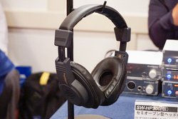 また、今回が初披露となる開発中のセミオープン型ヘッドホン「SW-HP300」も参考出品。こちらは12月発売で、2万円台半ばの発売予定だ。発売中の「SW-HP100」の上位機種となるモデルで、HP100の軽快な音作りではなく、「解像度の高く濃いサウンド」を目指したという。