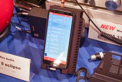 CARDAS/WOO AUDIOブースを展開する今井商事のブースでは、新製品としてヘッドホンアンプ「WA11 Topaz」にスマートフォンなどをセットする専用ケースをイベントに合わせて発表。3万円程度で、まもなく発売するとのこと。