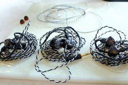 NOBLE AUDIO(CIEM)からは、会場限定で内部配線材を選べるオプション「Inside Wire Option」を、オーダー時に無料で提供するキャンペーンを実施。ブース内には3パターンの同オプションを施した「KHAN C」が展示された。