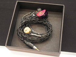 HYLAブランドでは、2BA+1ダイナミック+1圧電セラミック振動板ドライバーを搭載したイヤホン「Sarda」などを参考展示。1BA+1ダイナミックドライバーの「Eximia」も参考展示している。