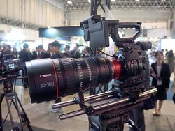 キヤノンのブースでは、“CINEMA EOS SYSTEM” の新製品「EOS C500 Mark II」を12月下旬の発売に先駆けて試すことが可能。新製品では8Kカメラ対応の放送用ズームレンズ「SP51×15.5B IESD-S」および「7×10.7 KAS S」も展示している。