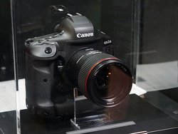 そのほかブースでは世界最小最軽量を謳う業務用4Kプロジェクター「4K6021Z」を4台用いての8Kシアターも展開。また、ケース内展示で触れることはできないものの現在開発中のデジタル一眼レフ新フラグシップ機「EOS-1DX Mark III」もブースに並んでいる。