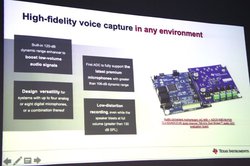 高品位な音質が求められるジャンルとして、カーオーディオ/プロ用製品/スマートホームと3つのカテゴリーを挙げ、TLV320ADC5140はスマート家電向けのADCであると説明。スマートホームのシステム構築が進む現在、「500億のデバイスがお互いに接続し合い、マイクやスピーカーにおいても同様の状況」だとし、発展に向けた課題の一つとして「ファー・フィールド音声キャプチャ」を挙げる。
