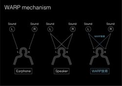 2モデルは、今年7月から8月にかけて、GREEN FUNDING by T-SITEにてクラウドファンディングを行い、支援総額が2,700万円を越えたというイヤホン。帯域・レベル・位相などを調整したLチャンネルとRチャンネルの信号を、それぞれ反対側のチャンネルに混ぜ合わせて再生、音の距離や位置を判断するための情報を追加する独自技術「WARPシステム」により、「イヤホンの解像度とスピーカーの再生空間を両立」することを特徴としている。