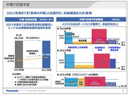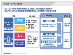 この状況を踏まえた中期ポートフォリオ戦略とは。「くらしインフラ」事業はパナソニックの基幹事業と位置付けられており、属するのはエアコンなどの<空調冷熱ソリューションズ>と<食品流通>。ここは投資領域として積極投資で事業成長を図り収益拡大を目指す。