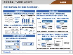 不採算事業と位置付けられたテレビ事業の方向づけも説明された。「考え方を変え、自前主義より転換を図って他社協業をふくむ構造改革を進める」という。事業環境の変化にも触れ、「需要を喚起してきた技術進化が停滞し市場が縮小。中国メーカーの価格攻勢による価格下落、急激な環境変化にパナソニックは対応しきれていない」との認識を明らかにした。