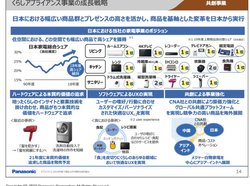 「くらしアプライアンス」事業の成長戦略では、パナソニックの強みである多様な商品ラインナップに加え、IoTやソフトを強化。「提供価値は、商品が持つポテンシャルをハードとソフトの両面で引き出し、ひとりひとりにふさわしい快適な体験を提供、心と体のすこやかさを実現すること」としてまず日本から、B to C、B to B to Cの新たな収益構造を構築する。