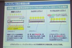 なお各画素が自発光する方式では有機EL(OLED)も同様だが、こちらは各画素が有機材料でできているため、環境の変化に弱い。そのため封止層が前面に設けられており、この点で無機材料を用いたマイクロLEDにメリットがあるとのこと。また耐熱の低い素材を使用していないため、比較的過酷な環境下でも使えるという。