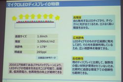JDI、1.6型の「マイクロLEDディスプレイ」を開発。量産化も視野