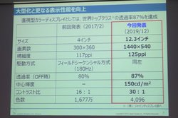 従来からの変更点として、透明度だけではなく精細度やコントラストも改善したとのこと。精細度は先述のように125ppiで、従来の117ppiから向上。またコントラスト比は16:1だったものが30:1となっている。