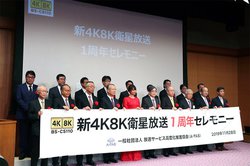 一般社団法人放送サービス高度化推進協会(A-PAB)は、新4K8K衛星放送スタートからまもなく1年を迎えるにあたってセレモニーを開催。10月末で視聴可能台数200万台超と「順調に普及が進んでいる」と現況を説明し、2020年の東京五輪に向けたさらなる意気込みを語った。会場には寺田稔総務副大臣も登壇、また推進キャラクターを務める深田恭子さんも登場した。