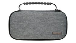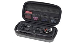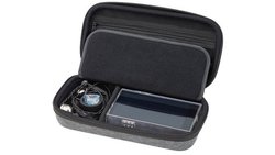 外部に持ち手、内部にメイン収納部/サブ収納部/内蓋を備えた、ポータブルオーディオ製品向けのセミハードケース。メイン収納部用として、仕切り×2、クッション×2、シリコン製イヤホン巻取り×1が付属し、マジックテープで自由にレイアウトできる。例として、仕切りとクッションを配置すればイヤホン1本とDAP1台、仕切りを2つ配置すればイヤホン3本が収納可能。