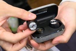 説明員に話を伺ったところ、「ワイヤレスかつノイキャンを求めるお客様が多い」とのこと。やはりワイヤレスモデルの注目が高いようで、会場に用意された完全ワイヤレスイヤホン「MOMENTUM True Wireless」についても、試聴するユーザーがひっきりなしに訪れていた。