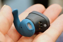 GLIDiCでは初のスポーツ向け完全ワイヤレスイヤホン「Sound Air SPT-7000」を出展。IPX5相当の防滴・耐汗仕様を備え、また耳を完全に塞がずに外の音を自然に取り込める「Run-fit形状」を採用した点が特徴だ。フィン付きのイヤーチップも程よい柔らかさで、しっかりと耳にフィットして安定した装着感を実現している。