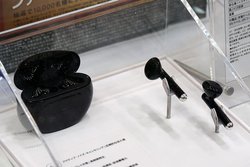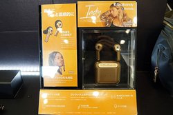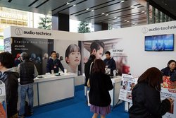 オーディオテクニカは、1Fと2Fにブースを構えた。1Fは毎回おなじみとなっている巨大ヘッドホンを目印に、エントランスの一番目立つ位置にブース展開。完全ワイヤレスイヤホン「ATH-CK3TW」を中心にした展示を行っていた。