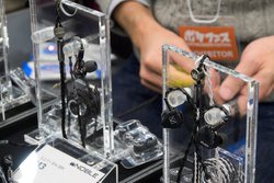 北日本音響は自社ブランドMother Audioのイヤホンを出展。ベリリウムを蒸着させた振動板やステンレス削り出しハウジングを採用した1万円台前半のエントリーモデル「ME3」、ハウジングにジルコニウムをベースとした「液体合金金属」を採用し、高剛性によりSN感を高めたフラグシップモデル「ME8」などが試聴できる。