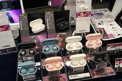ヤマハは、先日発表した完全ワイヤレスイヤホン3機種と、Bluetoothイヤホン2機種の展示を行っていた。