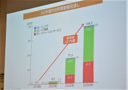 民生用途、産業用途を問わず、5Gによって工場や病院、農場、建設現場、スタジアム、街など多様な場面で新たなイノベーションが起こり、新たなサービスが次々に生まれてくる。5G市場の世界需要額は年平均63.7%で成長すると予測。2030年には、2018年の約300倍となる168.3兆円に拡大する見通し。IoT機器では自動運転車やロボット、ネットワークカメラ、ソリューションサービスの利活用では製造、金融、流通、物流が市場を牽引する。