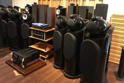 「アバック Classic馬車道店」はオーディオ中心の店舗となり、人気ブランドを中心に多数のスピーカーを取り扱う。B&Wのフルラインナップや、KEFのミドルクラス「Rシリーズ」、および中核モデル「BLADE2」なども設置する。