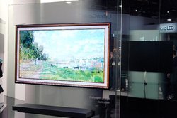 4K有機ELテレビはシリーズをデザインで見せる展開に突入。“ローラブル” の「RXシリーズ」は巻き取り式のデモ、「WXシリーズ」は壁貼り設置と、テレビの性能訴求よりショールームのような展示がメインだ。