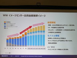 清水氏はまず、イメージングおよびセンシングソリューションの市場動向に言及。スマートフォンにおけるカメラの多眼化とイメージセンサーの大判化の流れが非常に早くなっていると紹介。2018年度はソニーのイメージング・センシング事業のなかでのセンシングの売上構成比はわずか数%だったが、こうした世の中の流れもあって、2025年度には30パーセントを占めるところまで事業を伸ばしたいという考えを示した。
