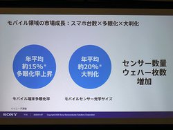 ――センサーについては、海外の、特にスマホ周辺では1億画素のカメラなど高画素化の流れがある一方で、ソニーとしては多眼化と大判化に進んできた。この市場のトレンドが今後どういうふうになっていくと見ているのか。