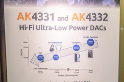 またDACでは、ハイファイオーディオ向けフラグシップモデル「AK4499」を紹介。さらに、昨年登場したばかりとなる、完全ワイヤレスイヤホンにも使える超低消費電力DAC「AK4332」もアピールされた。