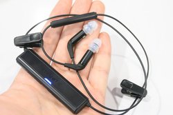 イヤホンとの接続コネクターはMMCXのため、他社製のイヤホンでも使用可能。ケーブルには3ボタンのリモコンを搭載、マイクも内蔵しており通話も可能だ。また周囲の音を聞くことができる外音取り込みモードも備える。そのほか、2つのシャツクリップとバッテリーを備えており、充電端子はmicroUSB。8時間以上の連続再生が行える。