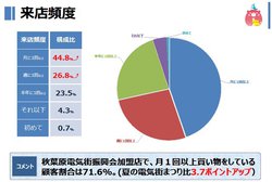 「秋葉原電気街振興会加盟店への来店頻度」は、「月に1回以上」が44.8%、「週に1回以上」が26.8%で、両者で7割以上を占め、前回からも3.7ポイントアップする。反対に「初めて」は0.7%にとどまっており、来街者が熱心な既存客に支えられている構図が鮮明となる一方、新規客の取り込みが今後のテーマのひとつとして改めて浮き彫りになる。