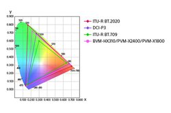 4K HDR映像制作の基準モニターとして使われる同社マスターモニター「BVM-HX310」と同一色域をもつ広色域パネル「α-Si TFTアクティブマトリクス」を搭載。マスターモニターからピクチャーモニターまで一貫した色管理が行えることで、撮影から仕上げまでの円滑なコミュニケーションをサポートするという。