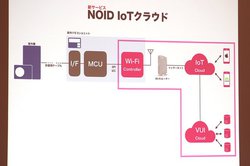 NOID IoT クラウドは、IoT家電の提供に必要なIoTやVUI(音声ユーザーインターフェース)に関する、API、UI/UX、対話フローなどを標準パッケージしたプラットフォーム。AIアシスタントはClovaに対応し、開発においてはClovaおよびClova Botの両方に対応するサービス開発も提供可能とのこと。なおその他の音声アシスタント機能については順次検討していくとした。