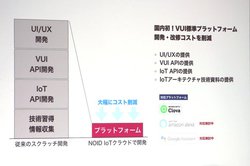 パートナー企業はNOID IoT クラウドを利用することで、システム開発や改修にかかるコストと納期を大幅削減でき、家電のVUI・IoT対応を行うことができる。さらに消費者向けに、住宅にIoTを導入したい方々のサポート支援をする代行サービスも展開予定。いずれも2020年春のスタートを目指している。