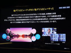 また、クラウド連携高画質化は映像モード「おまかせAI」時にのみ有効。加えて、テレビ本体の内蔵チューナーで受信した放送波に対してのみ有効となるため、USB-HDDに全録および通常録画したコンテンツが主な対象となる。BDレコーダー等外部機器とのHDMIケーブル接続では信号伝送の際の制約によって、本機能を適用できない。「もしかするとDLNA経由であれば利用できる可能性もあるが公式にサポートはできない」(同社スタッフ)とのこと。