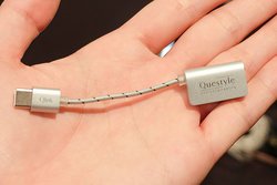 QuestyleブランドからはUSB Type-C接続のポータブルアンプ「Q-Link」の試作機が初展示された。8 - 600Ωの幅広いイヤホン/ヘッドホンに対応し、シーラスロジック製DACの搭載によりDSD128までのハイレゾ音源再生が可能となっている。発売時期は未定だが、10,000円を切る価格を見込む。ほか、MEZE Audioのヘッドホン「Empyrean」の新色となるCopper Blackモデルも展示された。