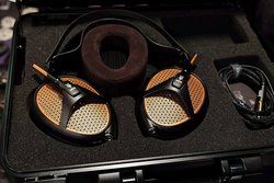 Unique Melodyの静電+骨伝導ドライバー搭載イヤホン「EST」は、前回イベントではクリアシェルだったが、今回はカーボンシェルでお披露目された。