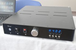 また、新規取り扱い予定のブランド「audio-gd」より、据え置きヘッドホンアンプ4製品が参考出展された。同社の飯田良平氏が「(ヘッドホンブームが盛り上がり始める前後の)往年のヘッドホンファンなら名前に聞き覚えがあるはず」と紹介する本ブランドは、大きく分けて独自開発のR-2R DACを採用した“Rシリーズ”と、ESSのDACチップを採用する“Dシリーズ”の2ラインを展開。どちらも再生フォーマットは最大でPCM 384kHz/32bit、DSD 11.2MHzネイティブ再生までサポートし、入力もUSB-B/光/同軸/HDMI(I2S)と充実している。