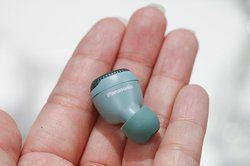 RZ-S30Wはφ6mmダイナミック型ドライバーを搭載した小型モデル。片側約4gと軽量で、耳栓のようなコンパクト設計とした点が特長だ。付属のイヤーチップもS/M/Lに加えてXSサイズを用意するなど、女性など耳穴のサイズが小さいユーザーでも、長時間快適に使用できる装着感を目指している。本機も正円形のデザインにリング形のオーナメントを施しており、カラーはブラック/ホワイト/グリーンの3色をラインナップする。