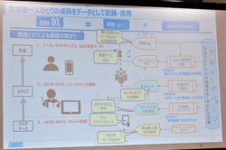 2019年3月に第1弾として、カリキュラムと連動して、スマホアプリで手軽に学習することを可能とした「イーオン・ネット・キャンパスアプリ」をスタート。同時にレッスンの出席率や受講状況、自宅学習状況などをデータベース化した。第2弾「AEON NOTE」(2019年6月)では、取得したデータの分析結果を教師専用タブレット「AEON NOTE」で共有し、学習者個々の進捗や理解度に寄り添ったきめ細やかな個別指導を実現。「新人教師でもベテラン教師と同様のアドバイス、サポートができるようになったことが最大のメリット」とアピールする。