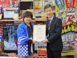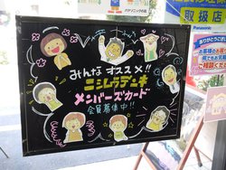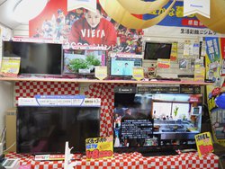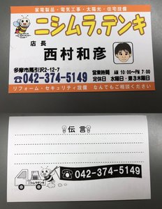 西村社長の奥様である香織さんは、独身時代から10年ほど家電店に勤めた経験を持つ。第2種電気工事士の資格も有して手腕を発揮、エアコンの取り付けなども担当する。また店内のPOPやチラシなどの販促グッズもすべて香織さんが手掛けたもの、わかりやすく楽しい表現がお客様にも好評を博している。