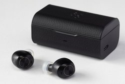 連続再生時間はイヤホン単体で最大9時間、ケースとの併用で最大180時間。ケースには革シボ仕上げが施され、モバイルバッテリーとしても使用可能な2600mAhの大容量バッテリーを搭載する。充電端子はUSB Type-C。