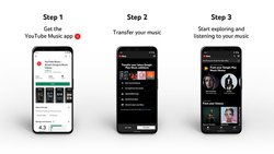 iOS/Android用YouTube Musicアプリ内に転送ボタンを用意。ツールを利用することによって、Google Play Musicで利用していた楽曲ライブラリー、個人設定、プレイリストをYouTube Musicへ転送できる。