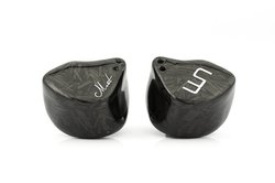 同ブランドのマルチBAカスタムIEM「V3+シリーズ」にも採用するカーボンシェルを採用。強度も高く軽量で、スタッフが手作業で一つ一つ仕上げている。複雑に配置されたカーボンファイバーが光を乱反射し、角度によって見え方が変わる美しいデザインも特徴としている。イヤホン端子はカスタム2Pinで、リケーブルに対応する。