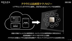 新開発エンジンがクラウドと連携することで様々な放送コンテンツを高画質化するという「クラウドAI高画質テクノロジー」を搭載。同機能では、番組の詳細ジャンルごとの画質特性や、コンテンツごとの画質特徴から導き出された高画質調整データベースをクラウド上に構築。クラウドから有機ELレグザに最適な映像調整データをインプットすることでリアルな高画質を実現するとアピールしている。